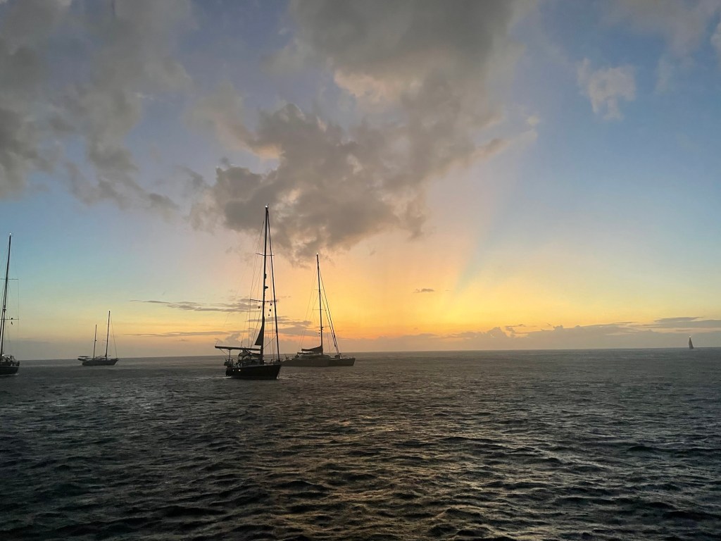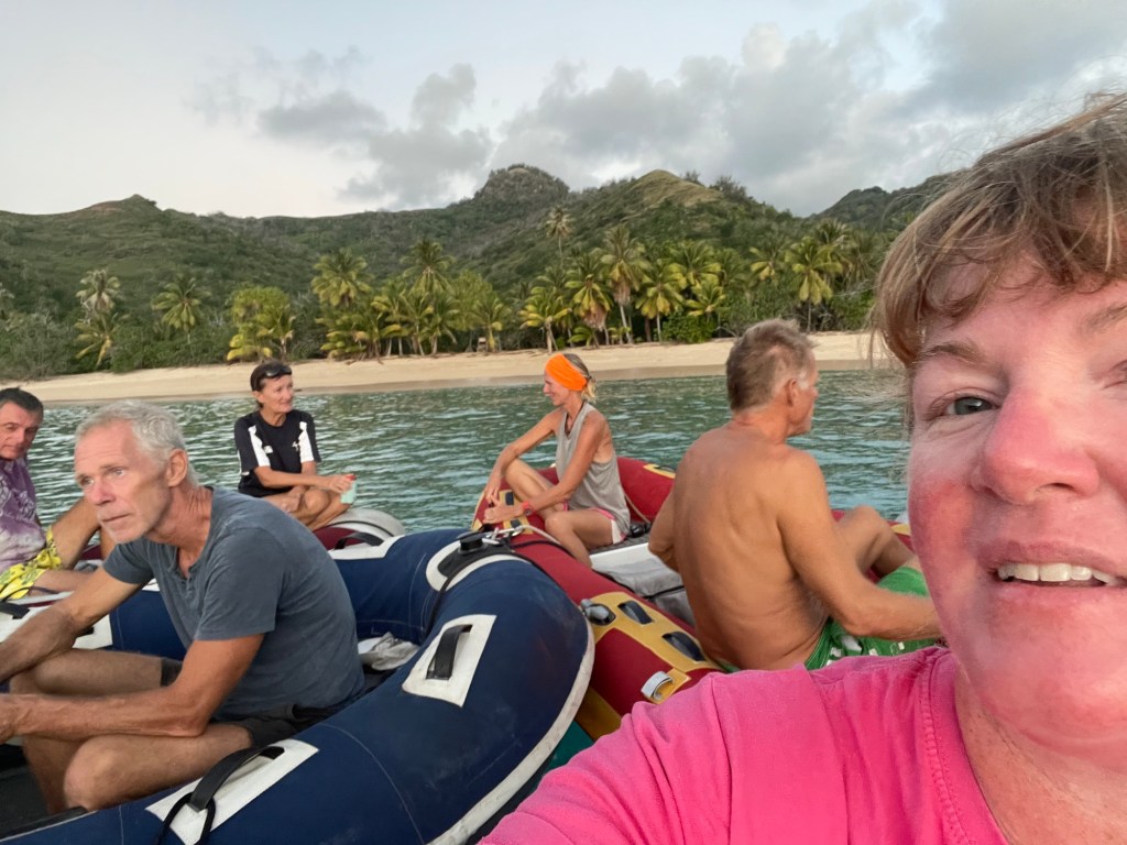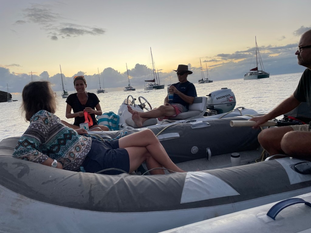 The best fun in Hanamoenoa bay on Tahuata was the raft-ups. Everyone grabbed a tasty beverage, jumped in their dinghys, dropped an anchor, tied together and watched the sunset. It was enjoyable to meet and greet neighboring boats.