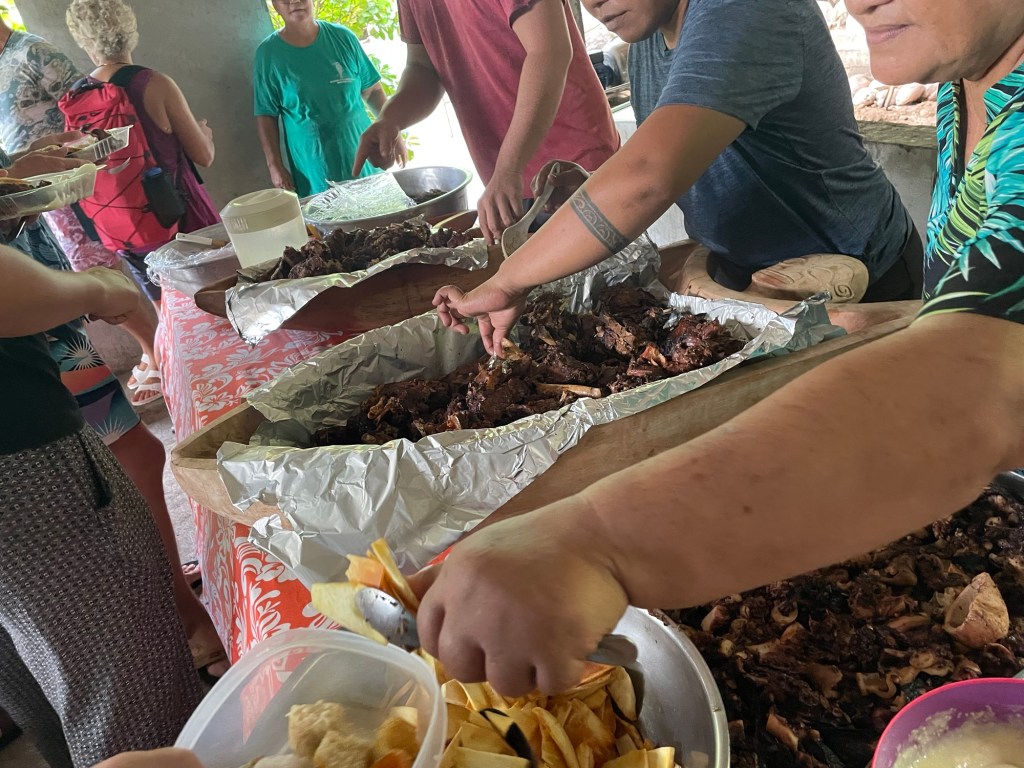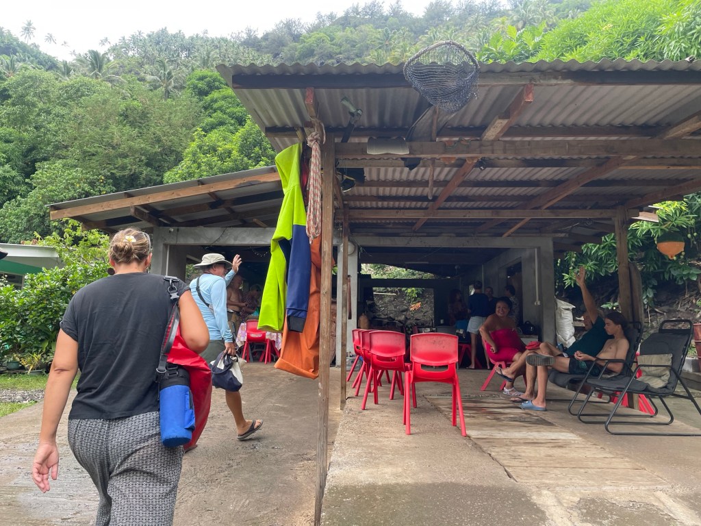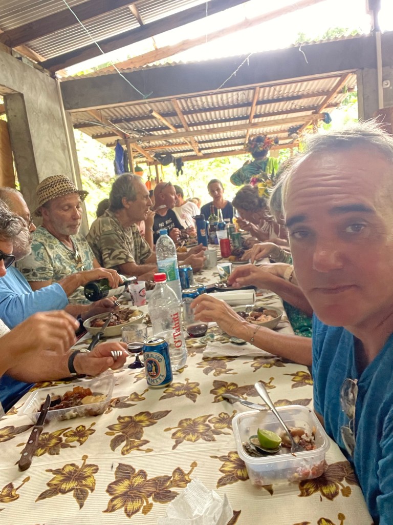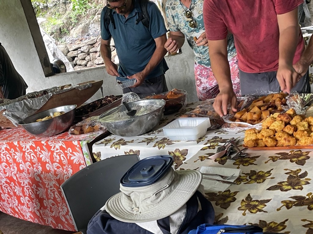 We were told to bring tupperware, so we thought they were giving it us to take home. Instead, from Marquesan to French to English was “bring your own plates and cutlery”. Fortunately, I carry silverware in my backpack (a COVID carry-through) so we ate out of our storage containers; no worries!